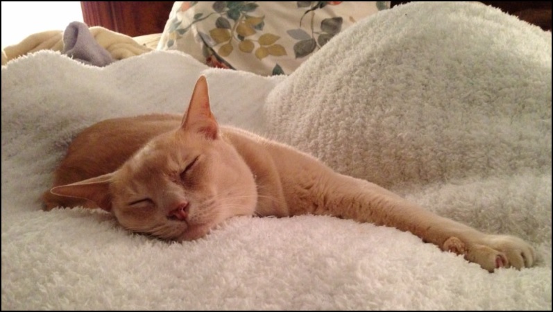 This is a picture of Roady, our beloved European Burmese, doing what he did best. Roady came to us, along with Tika, who is featured in my post “Trust.” We rescued them through my sister, Mary Ellen, and her friend Sue. And we are so grateful, as Roady was easily the most popular animal of four in our house, with five of us casting votes.