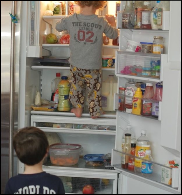 When our kids were much younger, our son was standing in front of the refrigerator with the door open. He gazed at the interior for quite a while, pondering what to have. And then he gazed some more. From the kitchen table, I said in what I thought was a fairly measured tone, “Shut the refrigerator.”